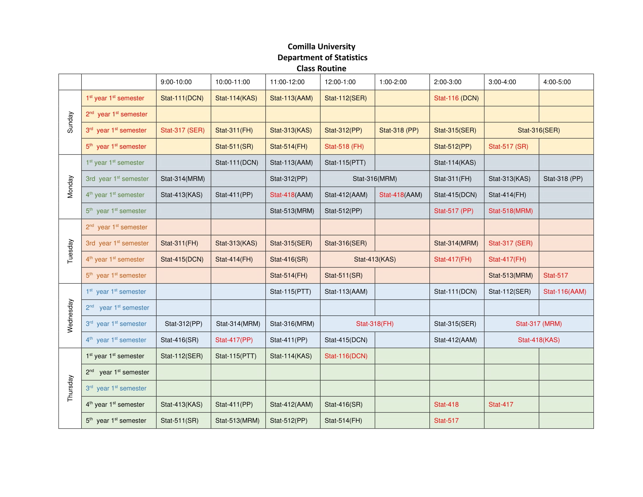 - ক্লাস রুটিন